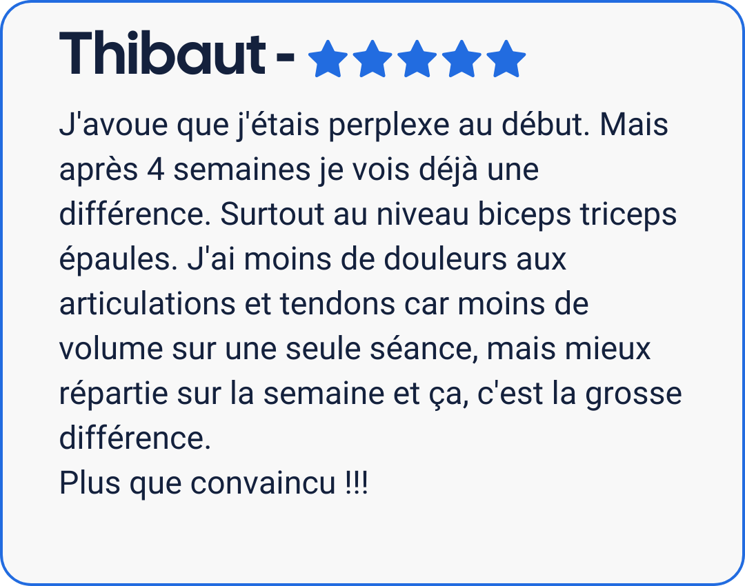 Idéal pour les pratiquants ayant moins d'un an d’entraînement régulier en salle.